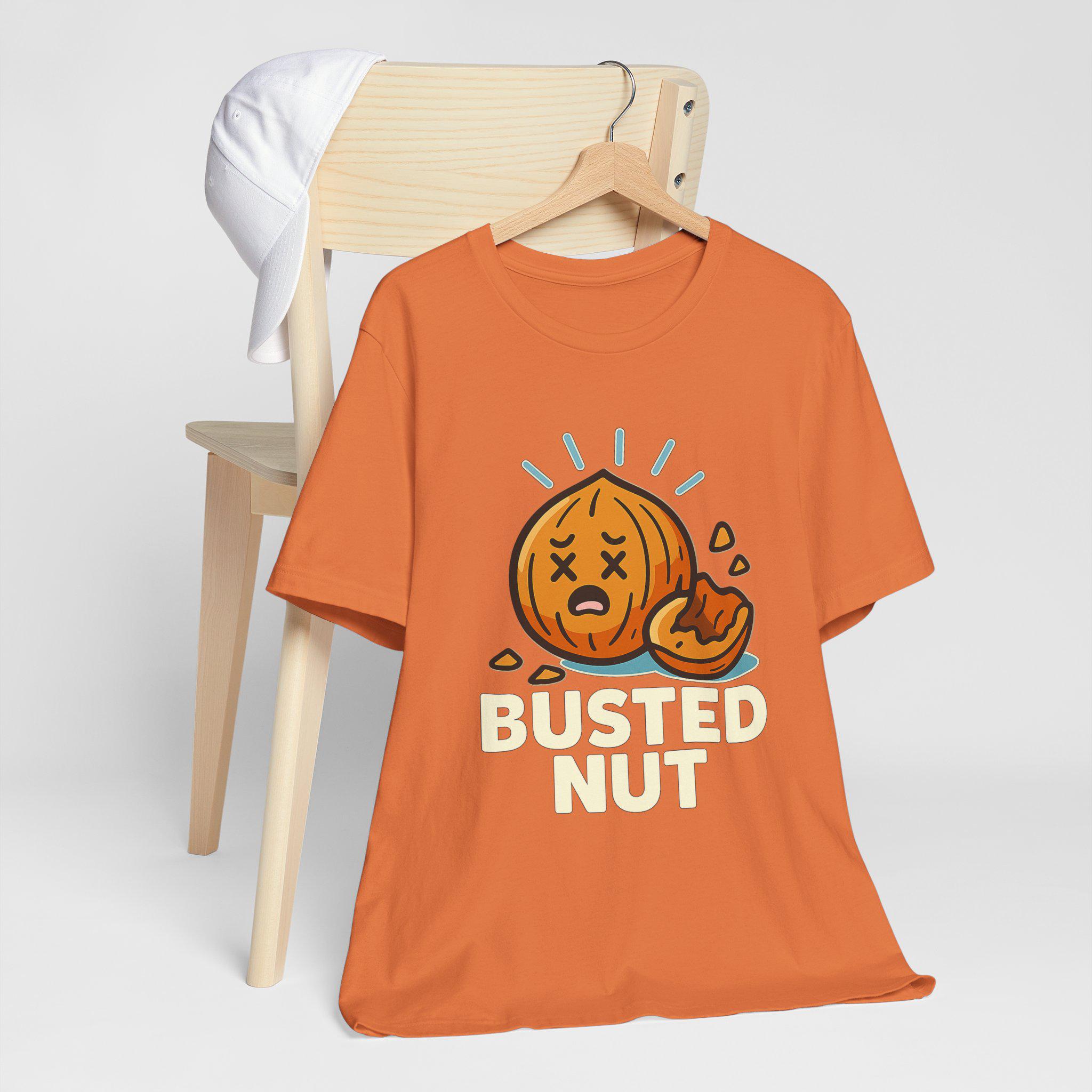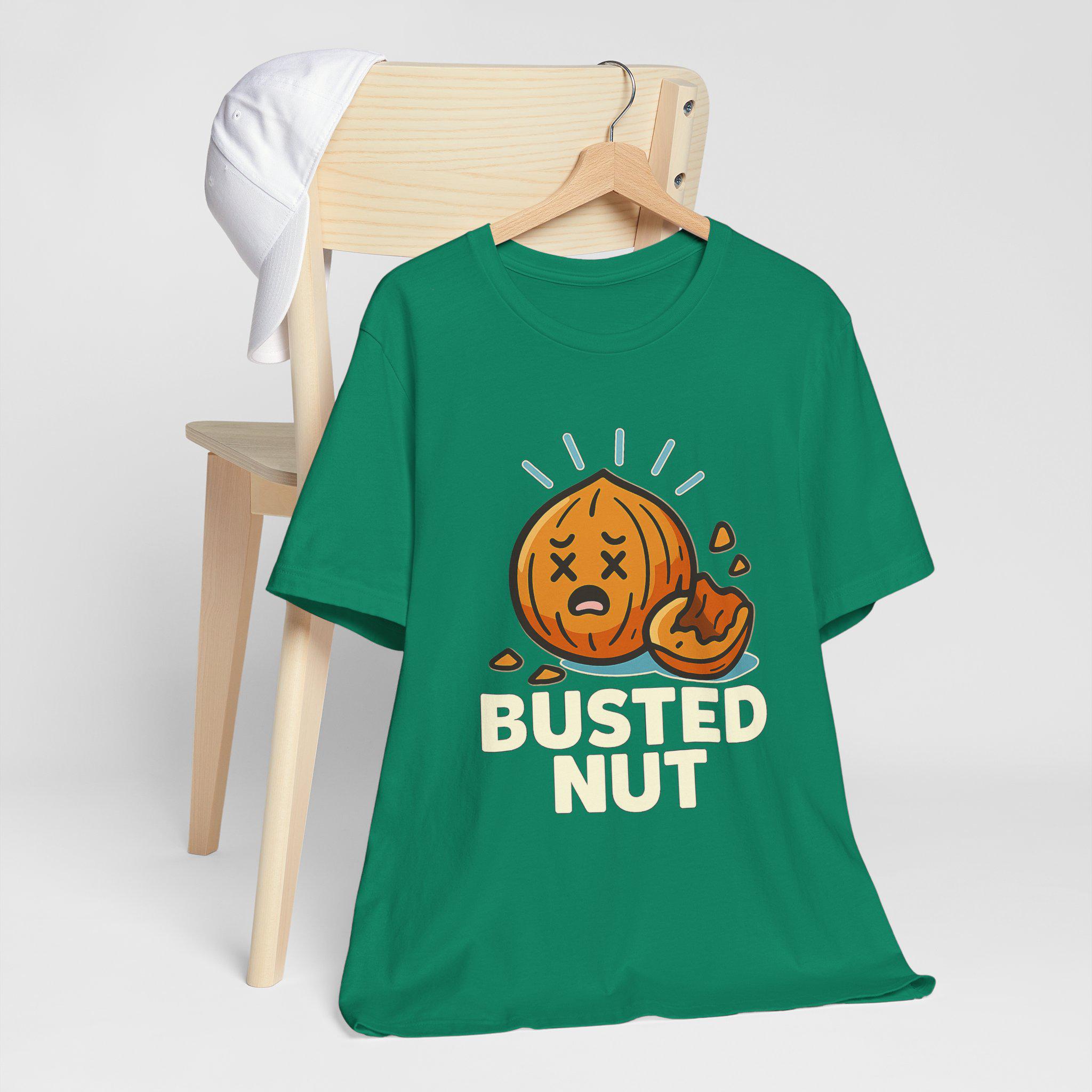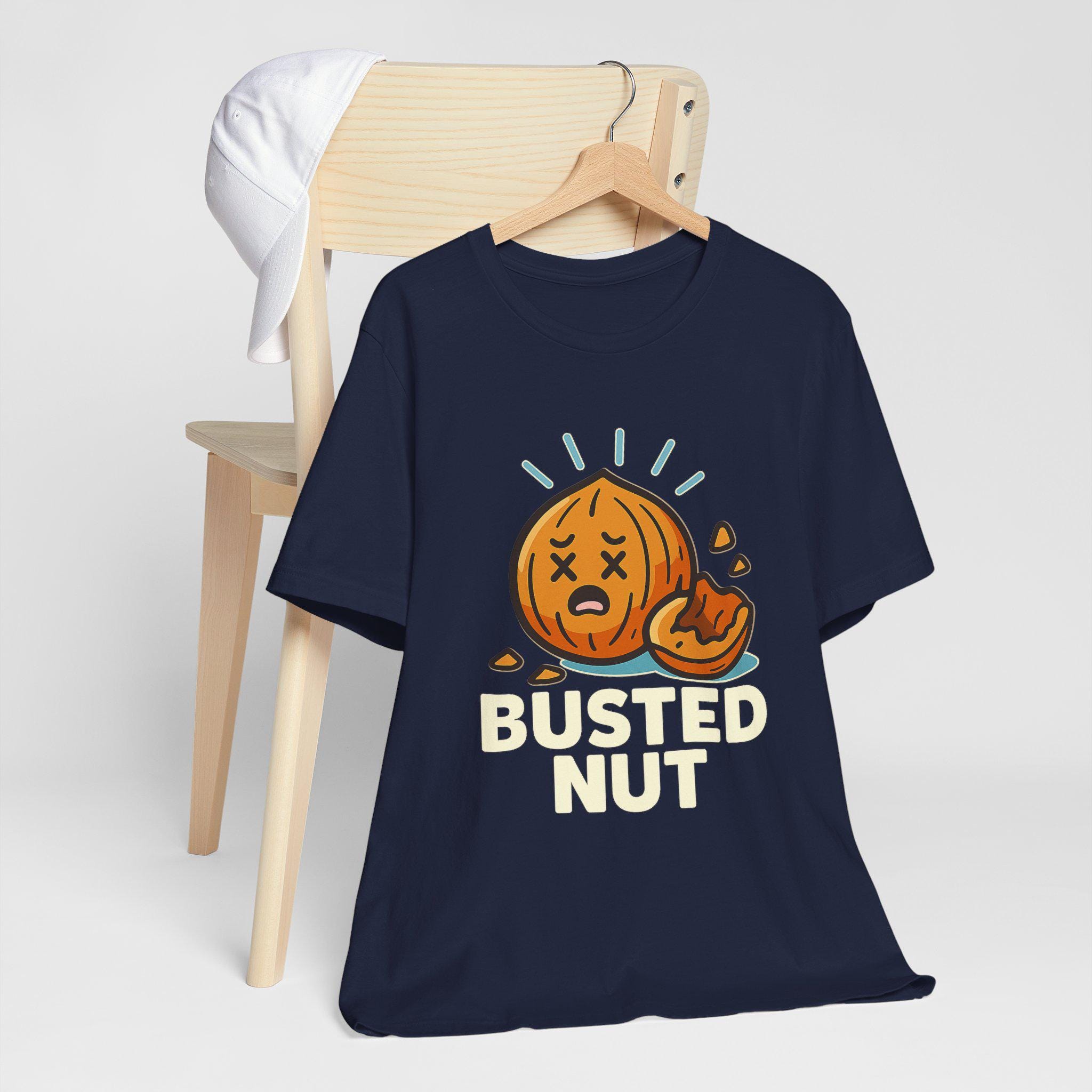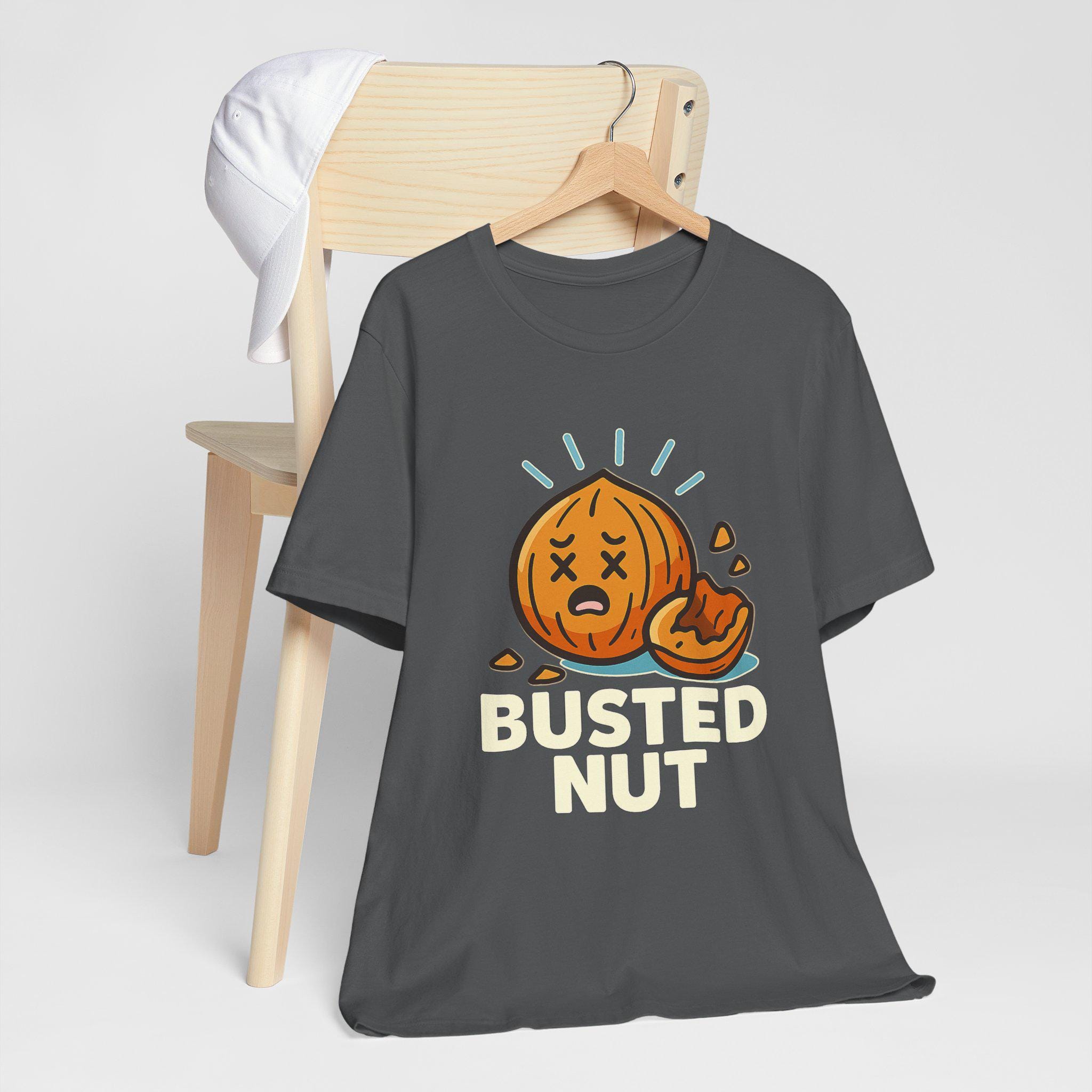 Slip into a tee that speaks your sense of humor without trying too hard. Soft, lightweight cotton drapes easily over your silhouette while a cheeky illustrated nut — mid-crack with cartoon eyes and bold lettering — adds playful attitude to coffee runs, game nights, or lazy weekends. The design sits confidently on the chest, drawing laughs and double-takes while the classic crew neckline and retail fit keep the look tidy enough to layer under a jacket or wear on its own. Wear it when you want to lighten the room, start a conversation, or simply celebrate the ridiculous.