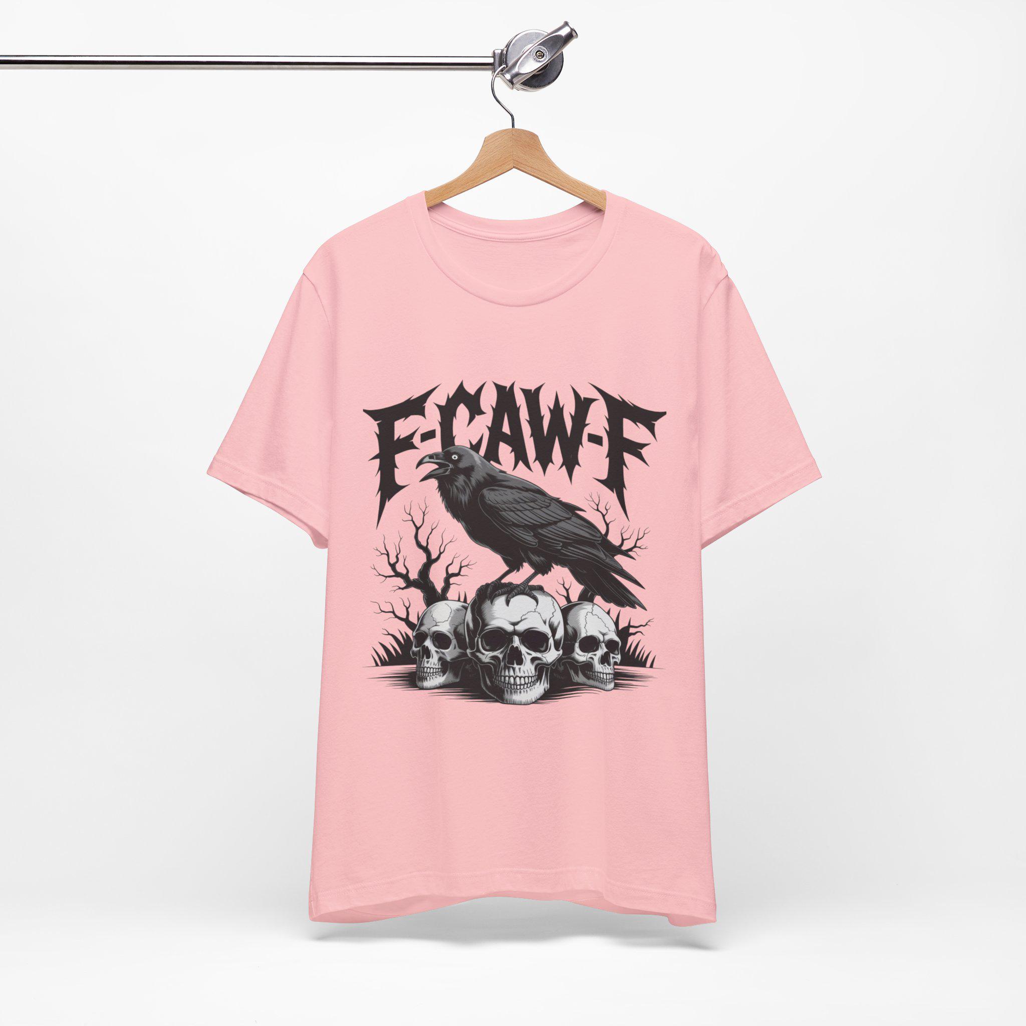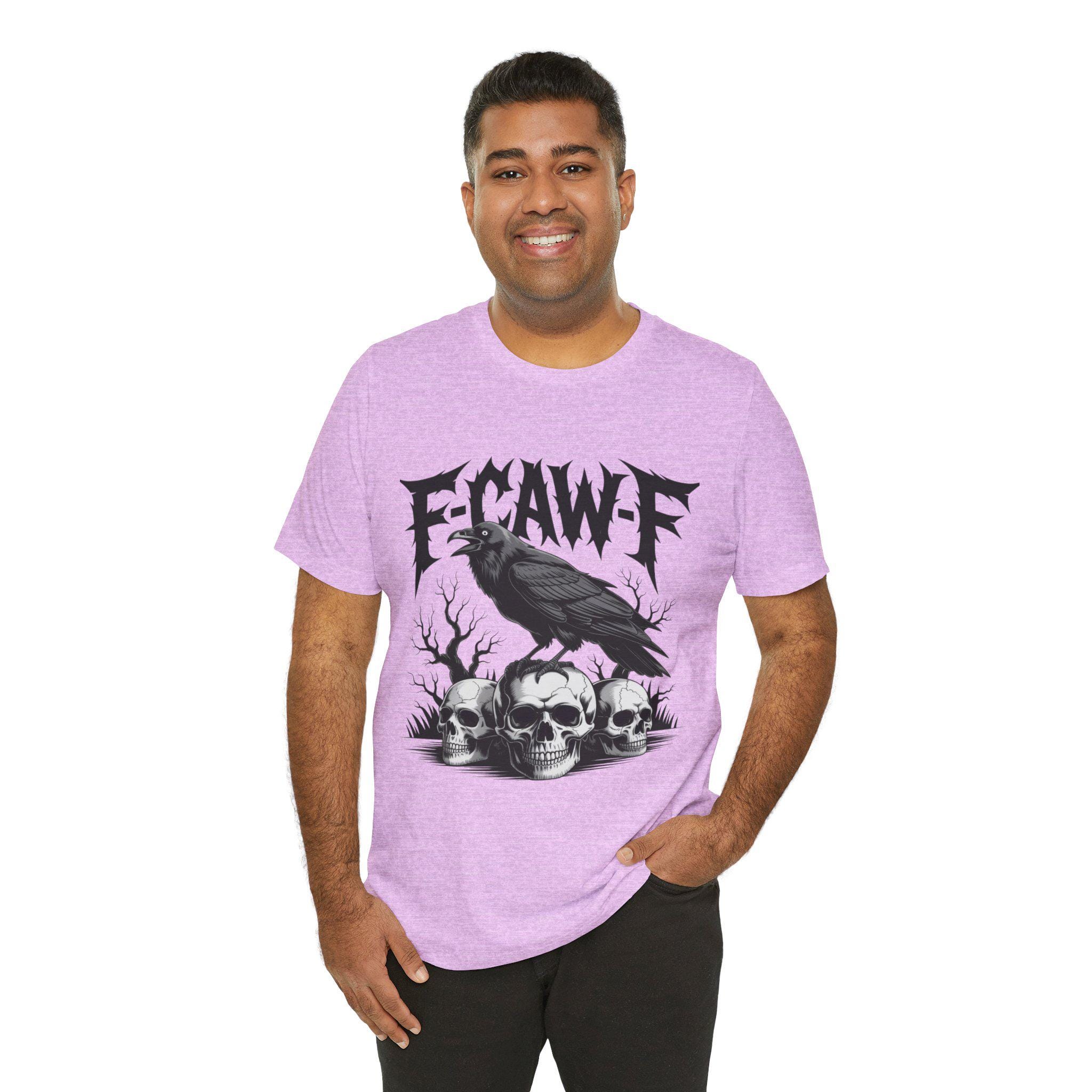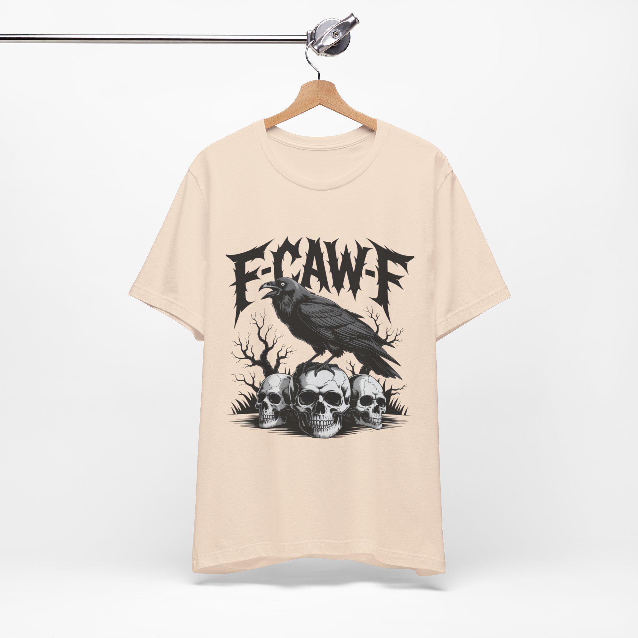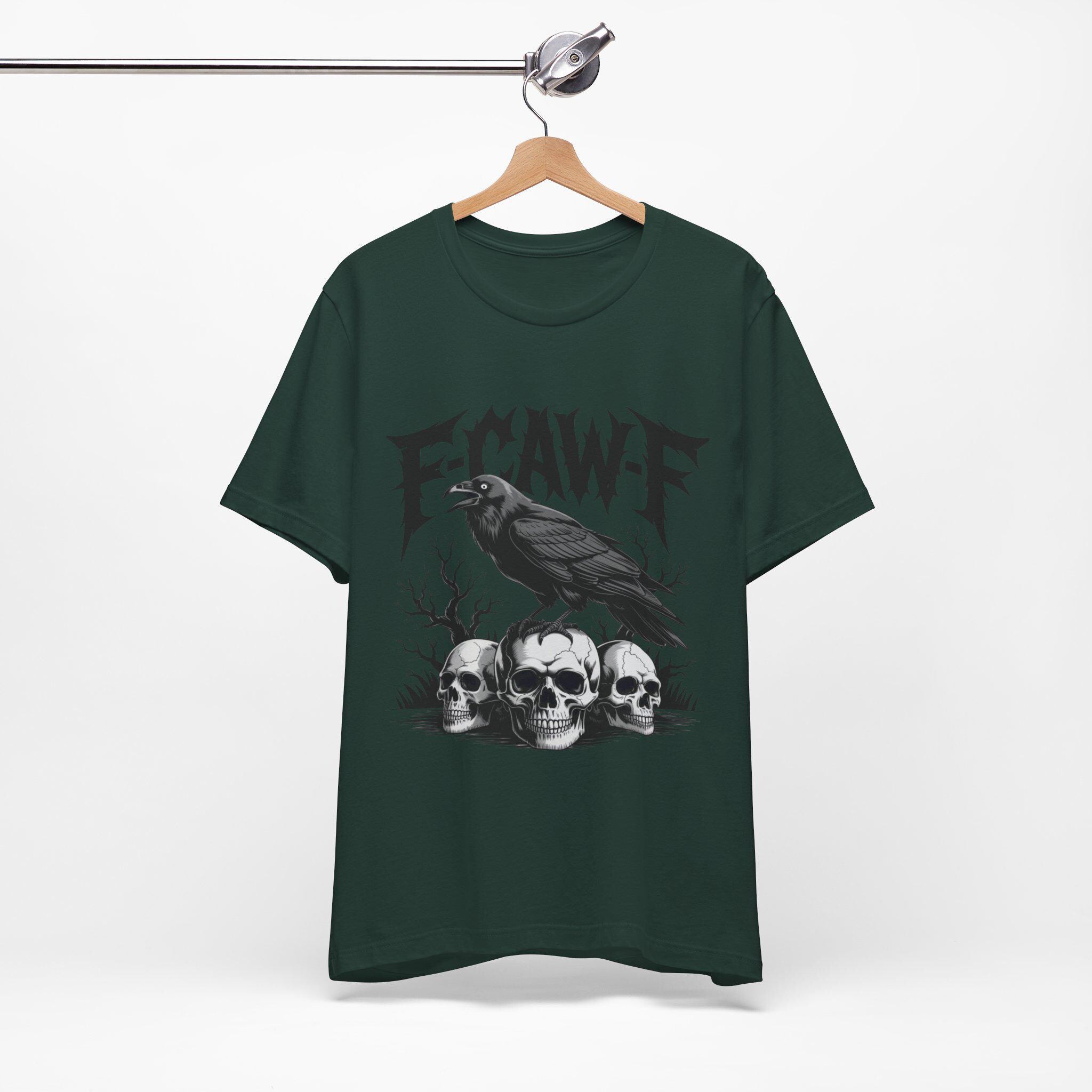 A stark, bold tee that wears its darkness with quiet confidence. A lone raven perches atop a trio of weathered skulls, set against twisted branches and sharp, jagged lettering — a look that speaks to late-night drives, underground shows, and mantelpiece curiosities. The lightweight cotton drapes cleanly for layering under a leather jacket or standing alone against pale winter light. Wear it when you want the mood to shift: a little grim, a little poetic, and wholly unapologetic.
